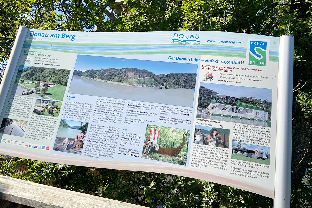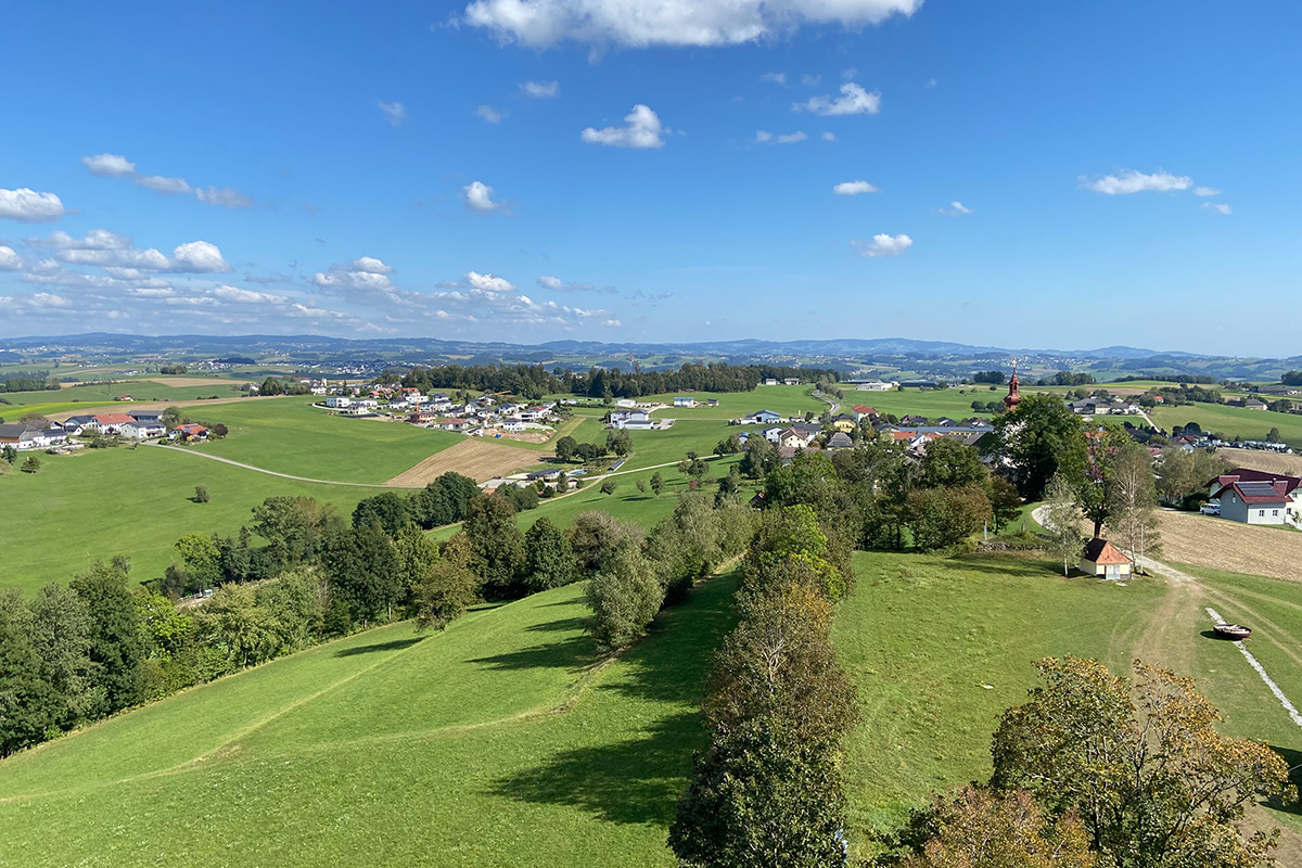 Nach der Gewürzbesichtigung führte uns der Betriebsausflug weiter nach Kirchberg ob der Donau, wo wir im Gasthaus Koblmüller DA‘ WIRT kulinarisch verwöhnt wurden. Nach regionalen Schmankerln wie Wiener Schnitzel, Wikinger Pfandl, gebackene Scholle oder Backhendlsalat gönnten sich die Naschkatzen unter den Mitarbeitern noch einen traditionellen Eispalatschinken. Gut gestärkt traten wir eine kleine Wanderung auf dem Wikingerpfad an. Der Weg führte uns über den 613 m hoch liegenden Burgstall, die höchste Erhebung an der Donau. Hier bot sich uns ein Aussichtsturm mit grandiosem Rundumblick über das obere Mühlviertel, das Donautal, auf den Sauwald und bei klarer Luft tief in die Alpen bis zum Dachstein.