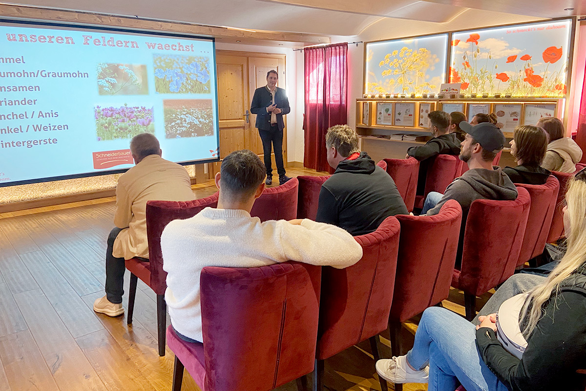 Beim Innviertler Unternehmen Schneiderbauer Gewürze in Lambrechten angekommen, erwartete uns Geschäftsführer Stefan Schneiderbauer im betriebseigenen Gewürzkino. Nach einem interessanten Film über die Firmengeschichte erhielten wir bei einer Betriebsführung faszinierende Einblicke in die Firmenphilosophie, die Produktion und Logistik des Unternehmens. Zum Abschluss konnten wir in Schneiderbauer’s Hofladen die Produktvielfalt entdecken und die ein oder andere Gewürzmischung mit nachhause nehmen.