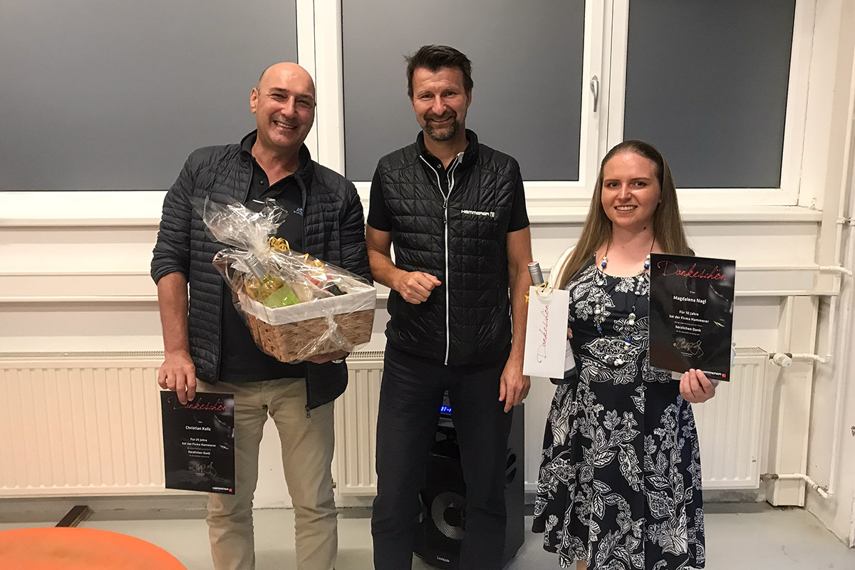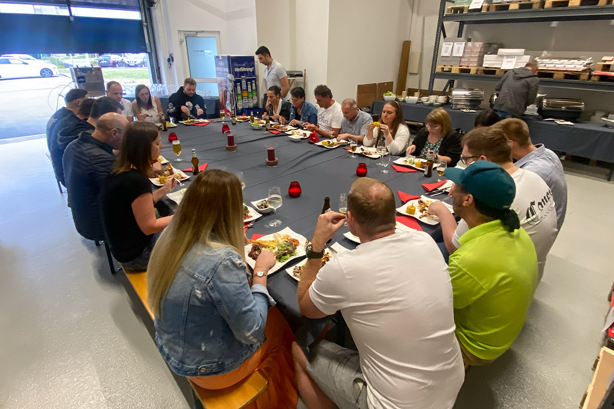 Das Catering für das Sommerfest wurde von Chilli Peppers bereitgestellt und ließ keine Wünsche offen. Schon zu Beginn wurden uns leckere Brötchen und erfrischende Getränke als Aperitif serviert. Auch das Buffet bot eine Vielzahl an Köstlichkeiten. Mit Ribs & Wings, Quesadillas, Antipasti-Gemüse, Salate und Knoblauchbaguette war die Auswahl fantastisch und jeder konnte nach Herzenslust schlemmen. Die süße Nachspeise darf bei uns im Innviertel natürlich auch nicht fehlen. Ein herzliches Dankeschön an unsere Kuchen-Bäckerinnen Eva, Karin und Elisa!Ehrung langjähriger Mitarbeiter